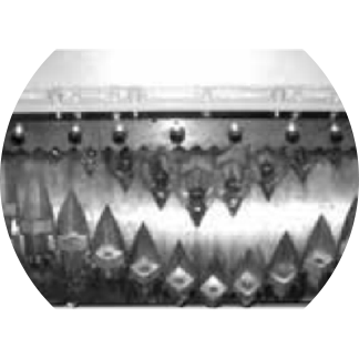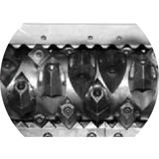 此刀輥是針對(duì)ABS.PC.尼龍等堅(jiān)硬材料進(jìn)行特殊設(shè)計(jì)。刀具沉入較深,單次切料較少,減少?zèng)_擊,同時(shí)降低噪音。